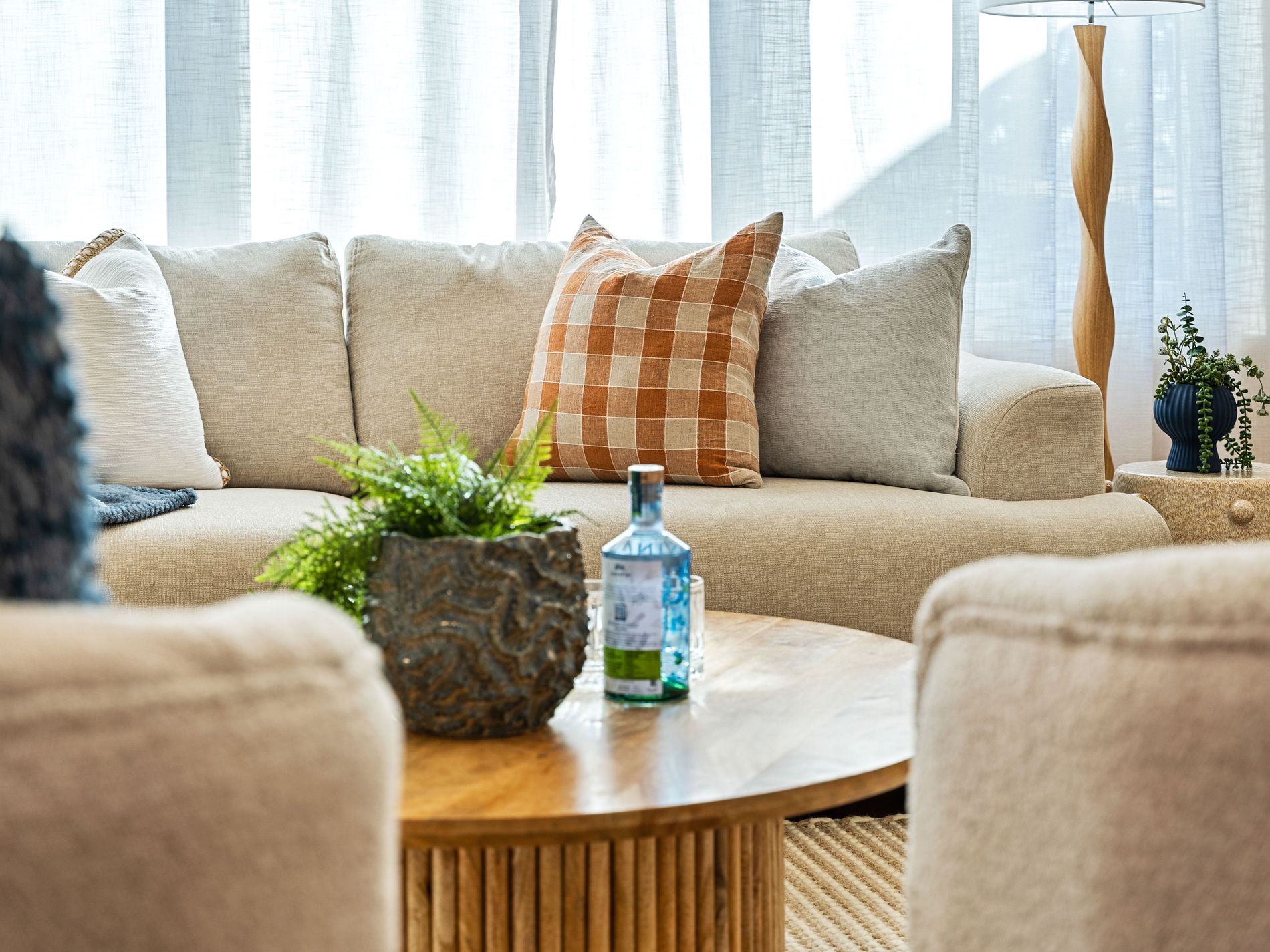 At its heart, the kitchen, connects seamlessly to the expansive outdoor entertaining zone, creating a true indoor-outdoor experience synonymous with premium coastal living.